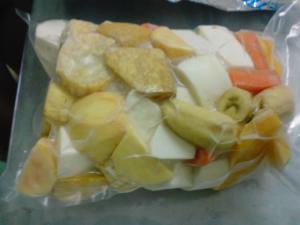 Packs of provision, pre-cut and frozen, just ready to empty in your pot. These packs would include a mixture of yam, dasheen(taro), sweet potato, eddoes, green figs and carrots. Considered a must for Caribbean soups. Just add meats and seasoning and you have a delicious soup.